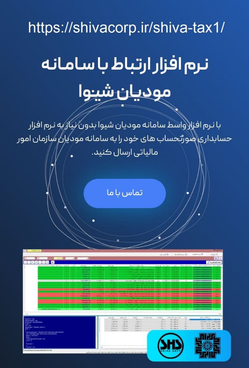 🔺❌با نرم افزار واسط سامانه مودیان شیوا بدون نیاز به نرم افزار حسابداری صورتحساب های خود را به سامانه مودیان سازمان امور مالیاتی ارسال کنید ❌دارای امکانات صدور صورت 🔺حساب‌های خرید و فروش رسمی و غیر رسمی و انتخاب و ارسال به سامانه مودیان برای تمامی اشخاص حقوقی و حقیقی 🔺امکان دریافت و ارسال به اکسل 🔺امکان اتصال به نرم افزارهای حسابداری و فروش 🔺امکان صدور و ارسال صورت حساب به صورت مستقل بدون اتصال به نرم افزار حسابداری و.. 🔺امکان چاپ صورتحساب مطابق با فرمت سازمان امور مالیاتی 🔺دارای گزارشات خرید و فروش و مانده حساب‌ها و موجودی کالا ها 🔺دارای صورت حساب‌های اصلاحی و ابطالی و.. 🔺کاربری آسان 🔺نصب و راه اندازی و آموزش رایگان همراه با ثبت نام در سامانه مودیان 🔺امکان گرفتن شناسه کالا و خدمات در سیستم 🔺امکان ارسال صورت حساب نقد و اقساط و چک امکان استعلام شناسه ملی اشخاص 🔺امکان استفاده تحت شبکه خدمات و پشتیبانی 24 ساعته ☎️021_26857764 www.shivacorp.com ❌طراحی ،خدمات و پشتیبانی با شرکت شیواپردازه (دانشبنیان ) با سابقه 25 ساله در طراحی نرم افزار با بکارگیری بروز ترین متد برنامه نویسی❌ 🛑خریدار محترم با توجه به اهمیت خدمات و پشتیبانی حرفه ای این سامانه برای مودی ، در طولانی مدت ، نرم افزار خود را از شرکت‌های اصیل طراحی نرم افزار و باسابقه و متعهد ، که زمینه فعالت آنها برنامه نویسی و طراحی سیستم هست تهیه نمایید تا در آینده مجبور به تغییر سیستم و ضررو زیان مالی و اعتباری نشوید
