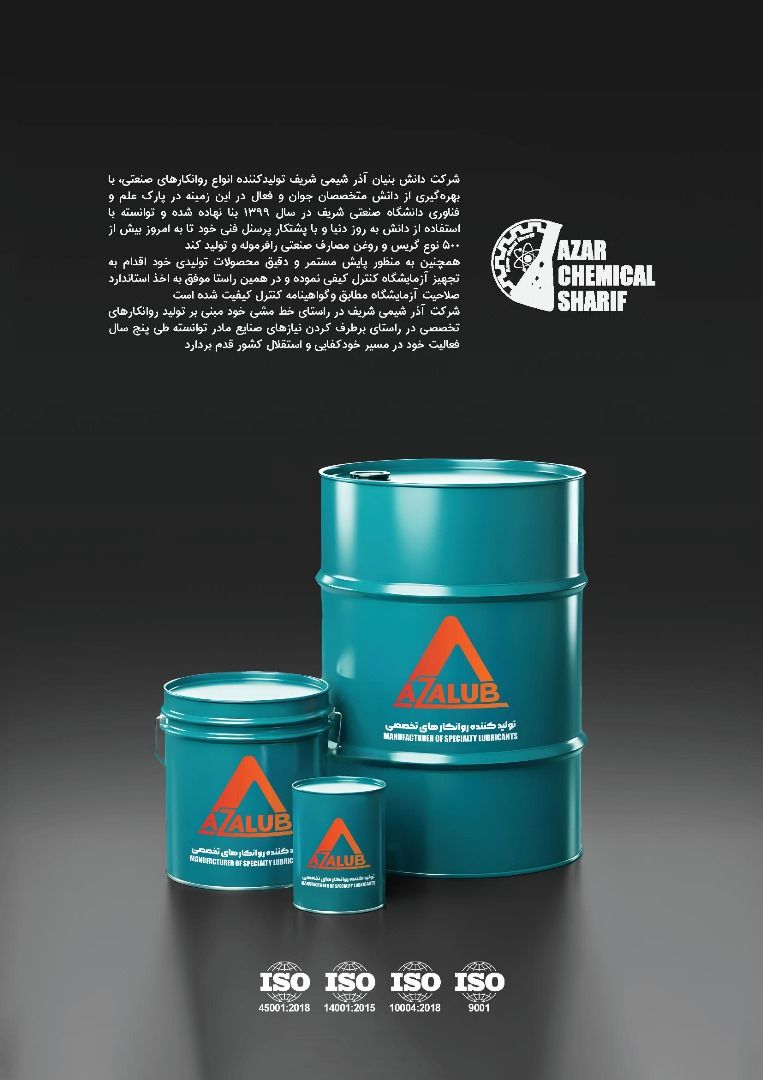 روانکار صنعتی آذالوب (AZALUB) 📍 تولیدکننده مستقیم | 💰 قیمت کارخانه 📜 گارانتی + اصالت 📞 تلفن: 09002936500 02166006500 سایت: www.azarchemicals.ir اینستاگرام: azarchemical.ir
